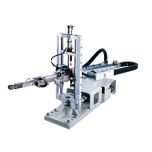 斜臂机通常配备紧凑设计的气缸驱动臂,带有多道程序操作系统。 它专为注塑机上的浇口拣选和零件拆卸而设计,从15吨到250吨,对产品或浇口速度的要求不高。非标斜臂机可以根据客户要求做成立式的取件机械手